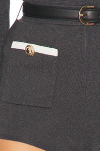 Details - Self: 67% viscose, 33% polyester - Contrast Fabric 1: 100% cow leather - Contrast Fabric 2: 100% synthetic leather - Dry clean only - Pull-on styling - Detachable belt with gold-tone buckle closure - Front gold-tone button pockets - Ribbed trim - Midweight knit fabric - Made in China - Our Style No. SPOF-WF22 - Manufacturer Style No. PF25-046P-GR