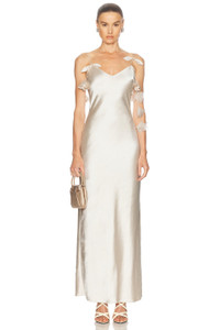 Details - 100% polyester - Made in China - Dry clean only - Unlined - Pull-on styling - Draping floral accents - Midweight satin fabric - Our Style No. SPOF-WD472 - Manufacturer Style No. SS25-255X-CH