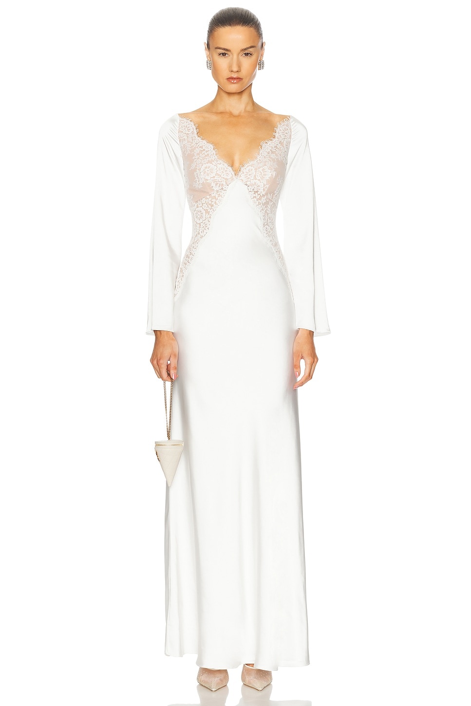 x Christopher Kane Lace Satin Long Sleeve Maxi Dress