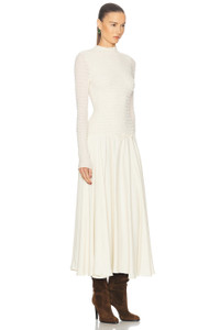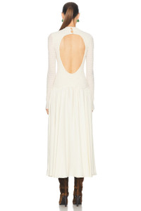 Details - Self 1: 55% rayon, 45% viscose - Self 2: 90% nylon, 10% spandex - Made in Turkey - Hand wash - Unlined - Halterneck button loop closure - Mockneck design with cut-out detail at back - Textured mesh fabric at top - Satin fabric at skirt - Our Style No. SEDF-WD56 - Manufacturer Style No. WFW24DR05EC