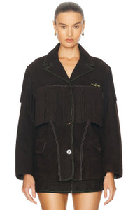 Details - 100% sheep leather - Made in Turkey - Professional leather cleaning only - Front button closure - Fringe detail on front and back - Front flap pockets - Logo embroidered detail at left breast - Item not sold as a set - Our Style No. SEDF-WO3 - Manufacturer Style No. WCL06CJ01DB