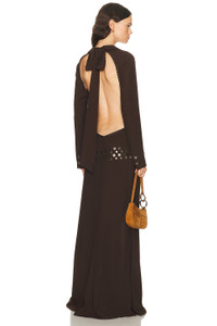 Details - 98% polyester, 2% elastane - Made in Turkey - Dry clean - Unlined - Front button down closure - Self-tie closure at back - Crepe textile with decorative brass-tone sequins - Open back design - Our Style No. SEDF-WD93 - Manufacturer Style No. WFW25DR15