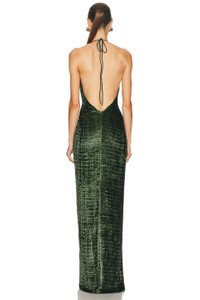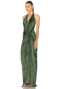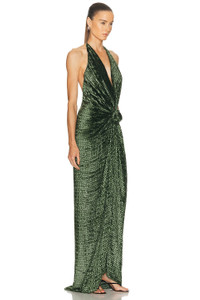 Details - 60% viscose, 25% silk, 15% nylon - Made in Colombia - Dry clean only - Unlined - Halter neck tie closure and back zipper closure - Lurex detail - Waistline knot detail - Our Style No. STCH-WD136 - Manufacturer Style No. ST250716