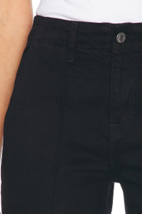 Details - 98% organic cotton, 2% elastane - Made in USA - Machine wash - Zip fly with button closure - Side slant pockets - Back welt pockets - Pressed pleat design - Denim fabric - Our Style No. JSIM-WJ11 - Manufacturer Style No. 524-4073-DN-BLK