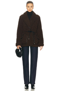 Details - Self 1 & Lining: 100% polyester - Self 2: 50% polyurethane, 50% polyester - Made in China - Dry clean only - Tie-up closure - Sherpa fabric - Our Style No. JSIM-WO54 - Manufacturer Style No. 524-6017-O