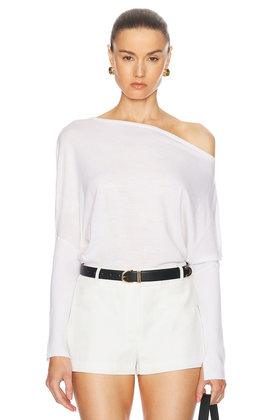 Lavina asymmetric off-the-shoulder ribbed wool-blend sweater