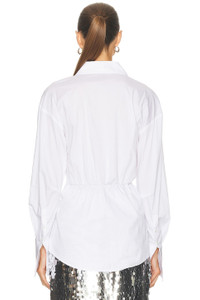 Details - 75% cotton, 22% nylon, 3% spandex - Made in China - Dry clean only - Button down closure - Tapered waist with cinched elastic waistband - Wrap tie detail around waist - Embroidered logo on button trim - Buttoned flare cuff - Our Style No. SIMF-WS80 - Manufacturer Style No. W3440-3169