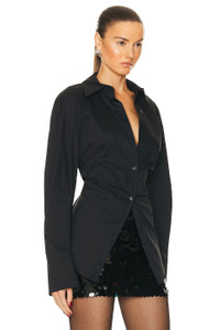 Details - 78% cotton, 19% nylon, 3% spandex - Made in China - Dry clean only - Front button closure - Attached back tie closure - Banded buttoned cuffs - Crisp poplin fabric - Our Style No. SIMF-WS57 - Manufacturer Style No. W3279