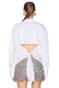 Details - 75% cotton, 22% nylon, 3% spandex - Made in China - Machine wash - Front button closure and back tie - Poplin fabric - Our Style No. SIMF-WS59 - Manufacturer Style No. W3279-3169
