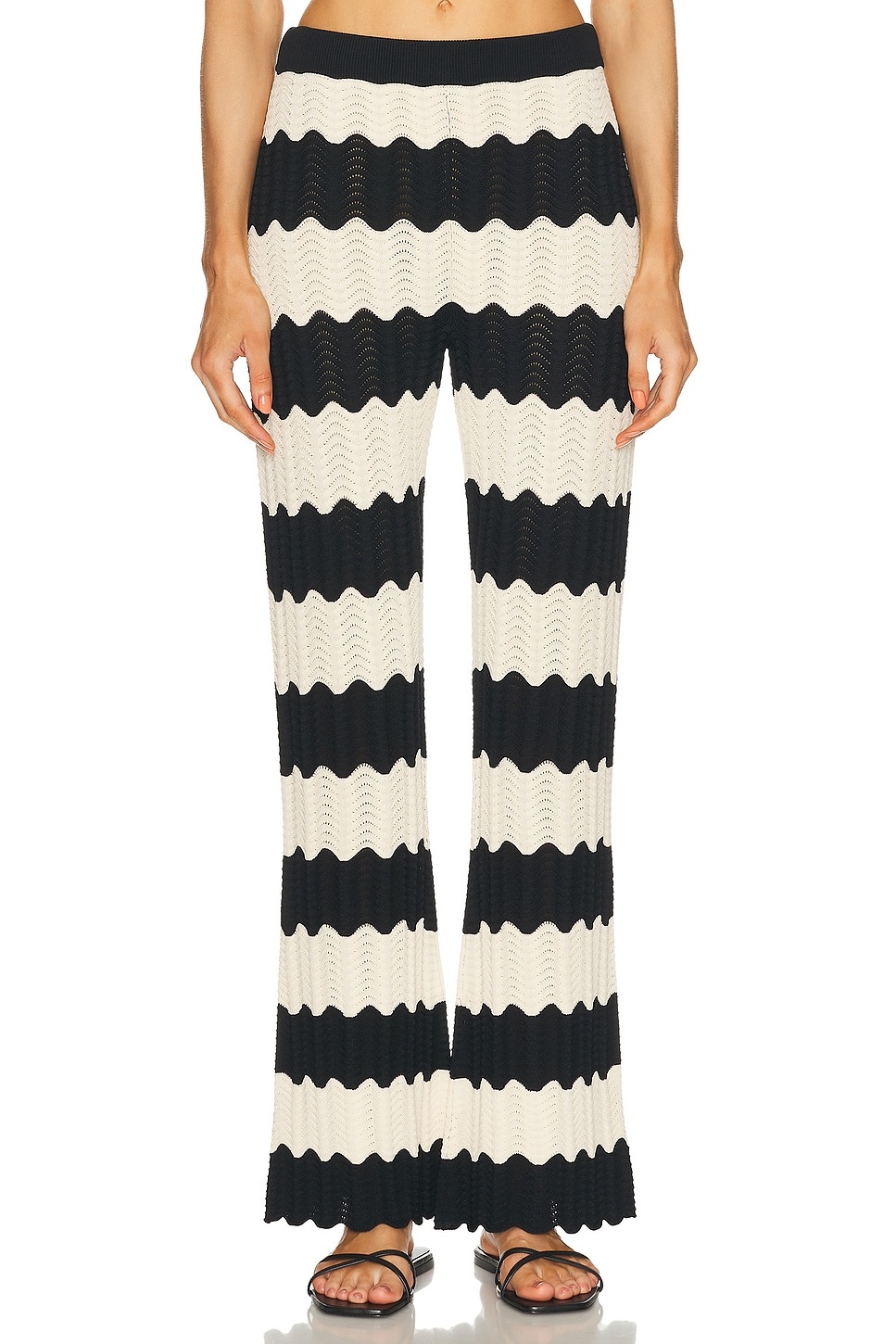 Moji Knit Pant in Black/Macadamia Wave Stripe