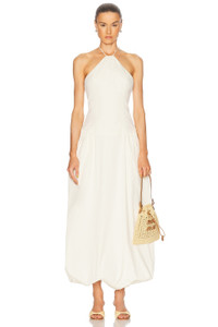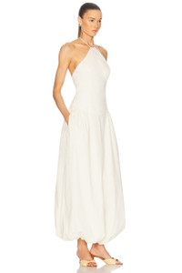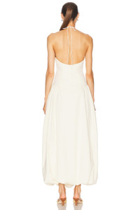 Details - Self: 75% cotton, 22% nylon, 3% elastane - Lining: 65% cotton, 32% nylon, 3% elastane - Made in China - Dry clean only - Fully lined - Halterneck tie-up closure - Hidden side zipper closure - Side slit pockets - Poplin fabric with bubble hem - Our Style No. SIF-WD169 - Manufacturer Style No. SIR125-1048