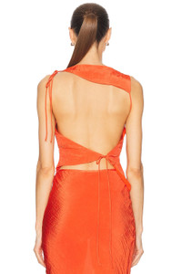 Details - Self: 80% polyester, 20% nylon - Lining: 100% polyester - Made in China - Dry clean only - Back tie-up closure - Back cut-out detail - Crinkled satin fabric with asymmetrical hem - Item not sold as a set - Our Style No. SIF-WS44 - Manufacturer Style No. SIR125-2067