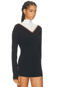 Details - Self and contrast: 83% recycled viscose, 17% polyester - Dry clean only - Pull on styling with half zip closure - Thumbhole details - Made in China - Our Style No. SIF-WS53 - Manufacturer Style No. SIR225-7015