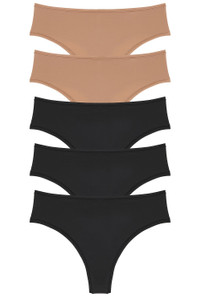 Details - Self: 76% polyamide, 24% polyamide - Gusset: 100% cotton - Machine wash - Thong design - Set of 5 - Soft lightweight jersey fabric - Made in Vietnam - Our Style No. SKMF-WI6 - Manufacturer Style No. TH-THG-9657W