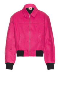 Details - 100% cotton - Dry clean only - Front zip closure - Side pockets - Ribbed trim - Allover embellished rhinestone detailing - Midweight twill fabric - Made in Turkey - Our Style No. SHFF-MO6 - Manufacturer Style No. SHF07J001