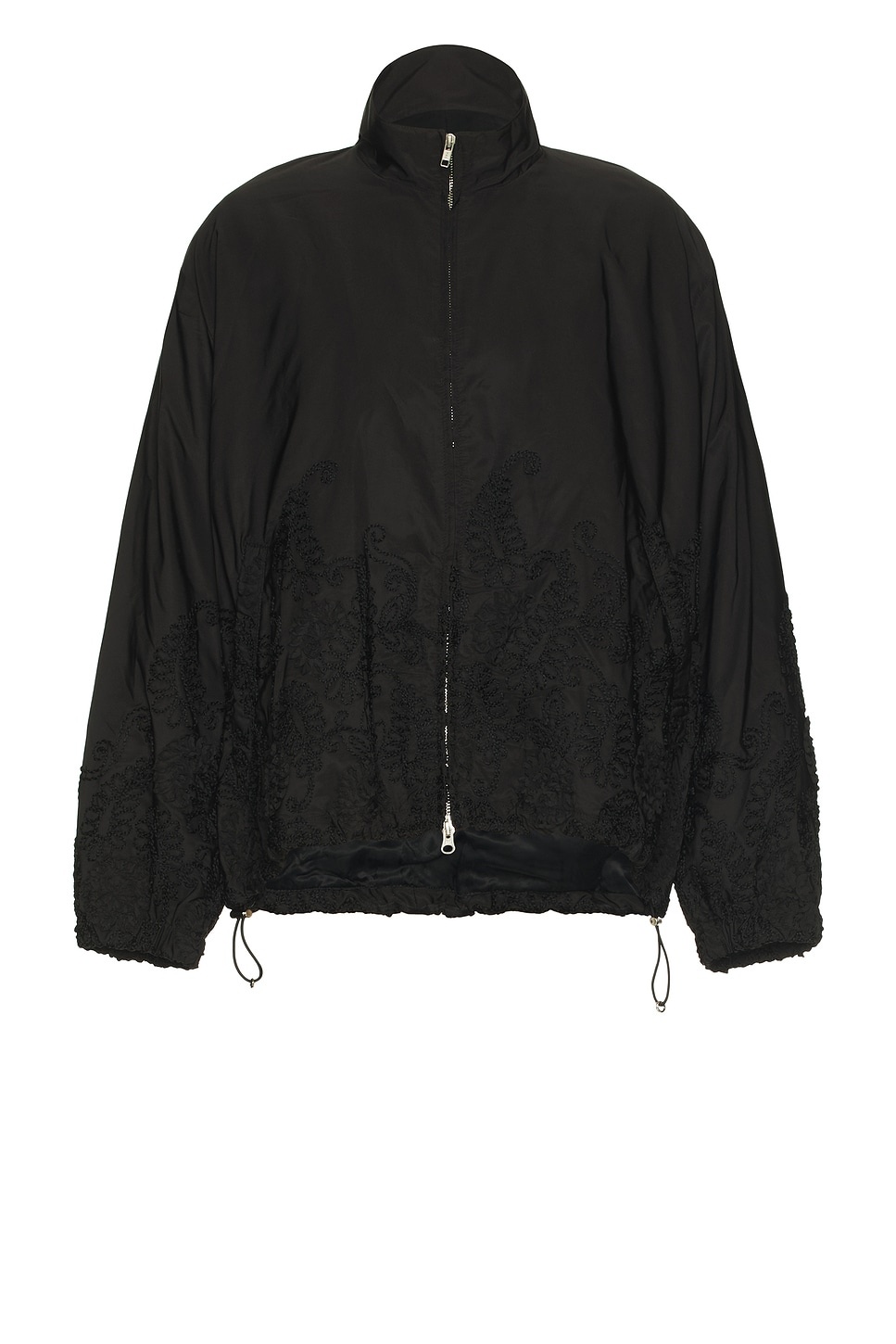 Details - Self: 100% polyester - Lining: 100% cupro - Made in Australia - Dry clean only - Two-way front zip closure - Side zip pockets - Adjustable pull-cord hem - Midweight ripstop with tonal knit detail - Our Style No. SFMU-MO5 - Manufacturer Style No. 251_MJK100_PSLYBLK