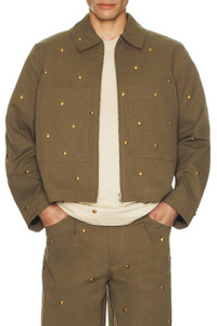 Metal Bead Crop Patch Pocket Jacket