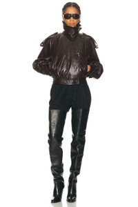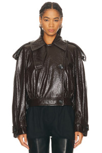 Short trench coat with patent leather effect - COFFEE