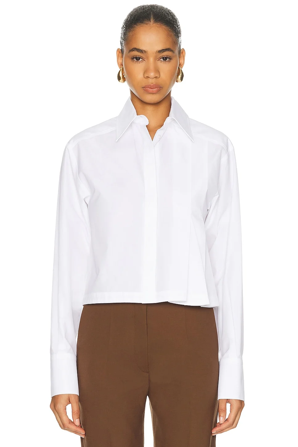 Details - 100% cotton - Made in Romania - Professional dry clean - Front button closure - Lightweight poplin fabric - Single rhinestone-embellished detail at cuffs - Pleated waist fabric on one side - Our Style No. STMF-WS17 - Manufacturer Style No. 2612111031600