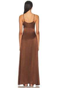 Details - 100% silk - Dry clean only - Unlined - Hidden side zipper closure - Front tie-up accent at bust - Satin fabric - Made in US - Our Style No. SPRF-WD34 - Manufacturer Style No. DRS112SLK5
