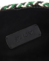 Details - Woven leather exterior with suede lining - Made in India - Top zipper closure - One main compartment - Measures approx 22 cm W x 13 cm H x 13 cm D - Shoulder strap with a 20 cm drop - Our Style No. SGNF-WY16 - Manufacturer Style No. R25-018VDE
