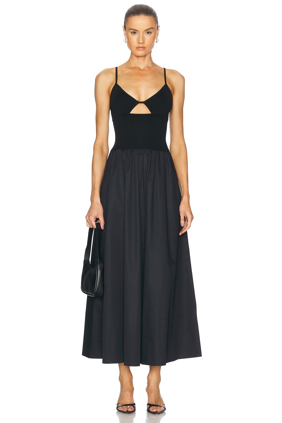 Details - Self: 53% viscose, 47% recycled polyester - Skirt: 100% cotton - Made in China - Hand wash - Unlined - Side slant pockets - Our Style No. SGNF-WD61 - Manufacturer Style No. R25-907BLK