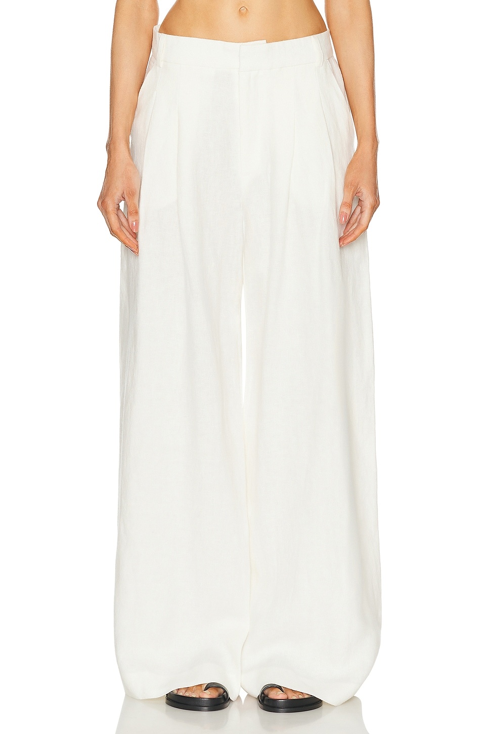 Details - 100% linen - Made in China - Dry clean only - Zip fly with hook and bar clasp closure - Front slant pockets with back welt pockets - Pleated design - Our Style No. SGNF-WP30 - Manufacturer Style No. W24-514IVY