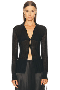 Details - 100% TENCEL™ lyocell - Hand wash - Front hook and eye closures - Ribbed trim - Midweight knit fabric - Garment is intentionally sheer, undergarments will show through. - Made in China - Our Style No. SGNF-WS92 - Manufacturer Style No. S25-203BLK