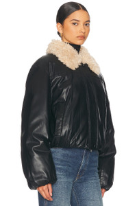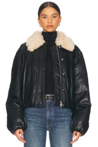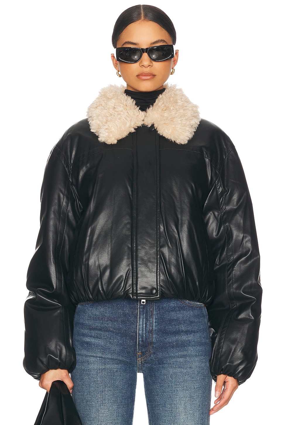Details - Self 1: 55% viscose, 45% polyurethane - Lining & Padding: 100% polyester - Made in China - Dry clean only - Hidden front zipper and button snap closures - Faux leather fabric with faux fur collar - Our Style No. SDIF-WO65 - Manufacturer Style No. 62296-8983