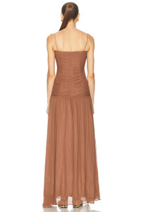 Details - Self: 100% viscose - Lining: 100% polyester - Dry clean only - Fully lined - Hidden back zipper closure - Boned bodice - Ruched georgette fabric - Made in China - Our Style No. STAD-WD310 - Manufacturer Style No. R25P2119CF