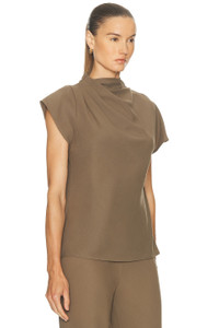 Details - 70% acetate, 30% polyester - Dry clean only - Hidden back zipper closure - Mockneck styling - Crepe fabric with ruching detail - Item not sold as a set - Made in China - Our Style No. STAD-WS119 - Manufacturer Style No. R25F1003TP
