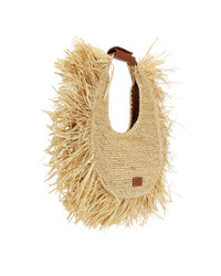 STAUD LARGE RAFFIA MOON TOTE BAG NATURAL FRINGE