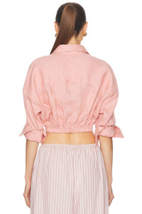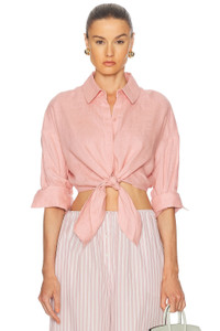 Details - 100% linen - Made in China - Dry clean only - Front button closure - Tie-up closure at waist - Cuffed sleeve design - Cropped fit with elastic stretch at hem - Linen fabric - Our Style No. STAD-WS105 - Manufacturer Style No. R25S1143LN