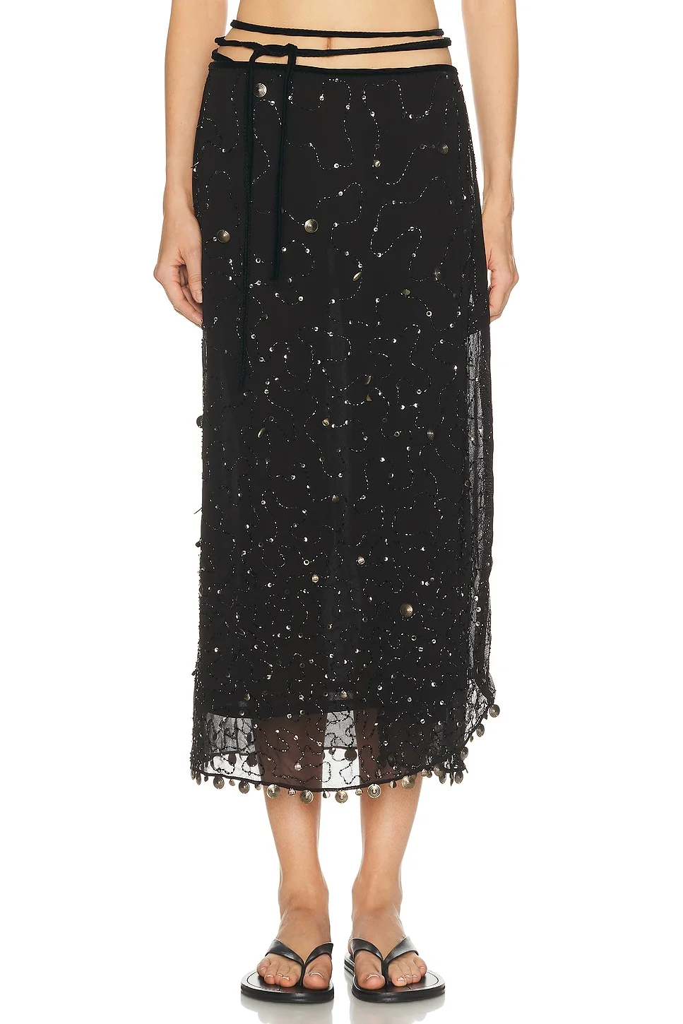 Details - Self: 100% viscose - Embroidery: 50% glass beads, 50% brass material - Lining: 80% nylon, 20% elastane - Made in India - Dry clean only - Partially lined - Side tie closure - Lightweight bead-embellished georgette fabric - Our Style No. STAD-WQ42 - Manufacturer Style No. R26S6123BN
