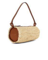 Taru Mini leather-trimmed raffia shoulder bag Neutral