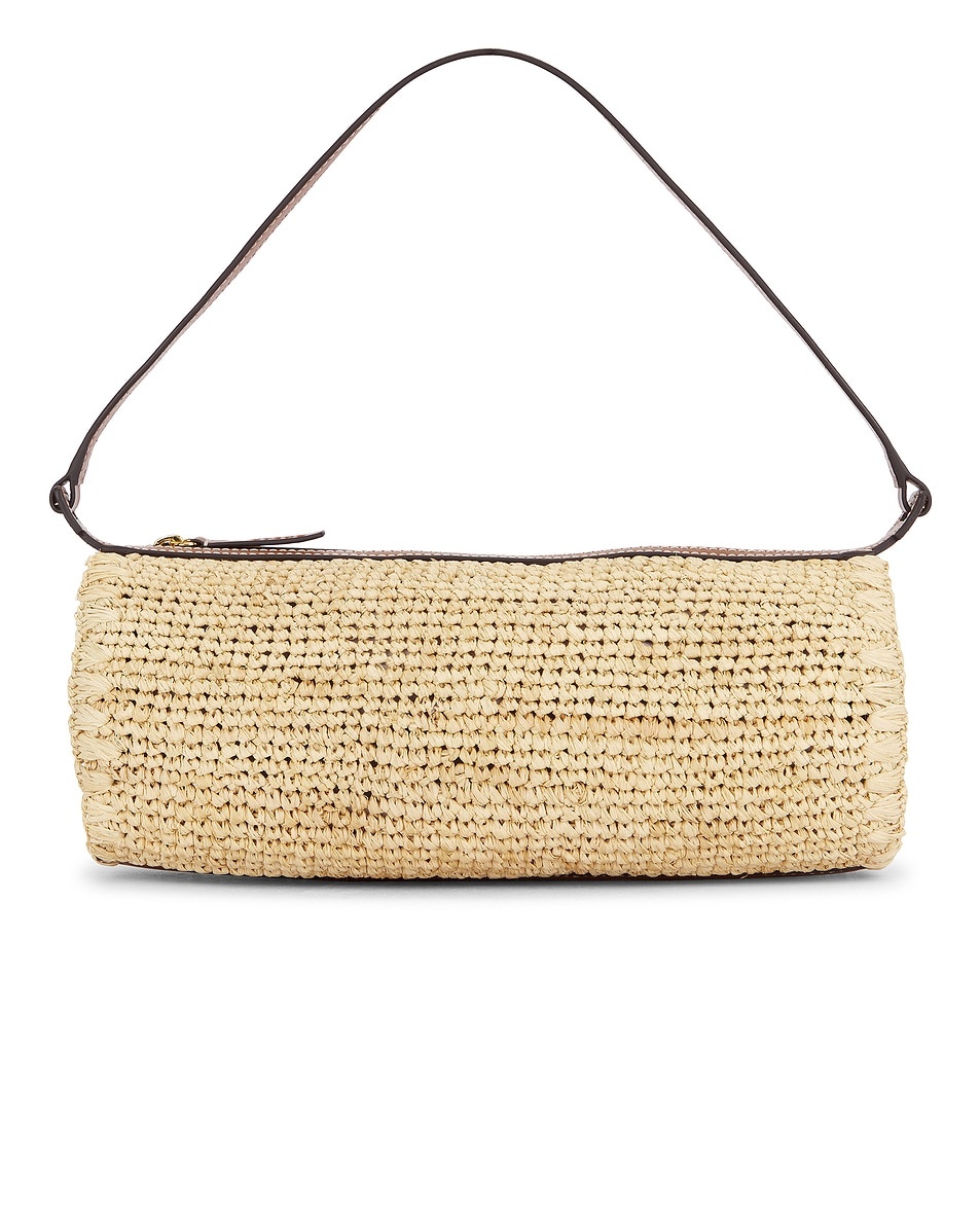 Details - Raffia exterior with leather lining - Made in India - Top zipper closure - One main compartment - Interior flat pocket - Measures approx 29 cmW x 11 cmH x 11 cmD - Shoulder strap with a 18 cm drop - This item is not available to ship to Australia - Our Style No. STAD-WY106 - Manufacturer Style No. H25S6017RB