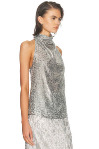 Details - 68% metallized fiber, 32% silk - Made in Italy - Mild process - Pull-on styling - Lightweight velvet fabric - Turtleneck styling with exposed back - Garment is made with a semi-sheer fabric, undergarments can show through - Our Style No. SMCC-WS211 - Manufacturer Style No. 6T02703HJ303