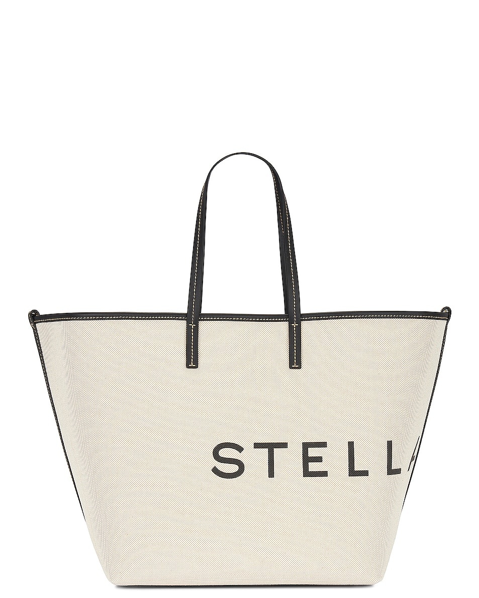 Details - Canvas exterior with Stella McCartney logo and polyurethane lining - Made in Italy - Open top with adjustable strap closure - One main compartment - Dual shoulder straps - Gold-tone metal feet - Includes button pouch - Measures approx 14" W x 28" H x 7" D - Shoulder straps with a 7" drop - Pouch measures approx 9" W x 6" H x 0.5" D - Our Style No. SMCC-WY498 - Manufacturer Style No. 7B0048WP0221