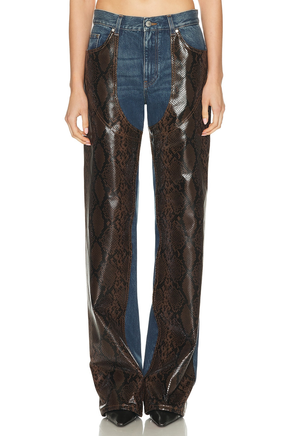 Details - Self 1 & Lining: 100% cotton - Self 2: 100% polyester - Dry clean only - Zip fly with button closure - 5-pocket design - Denim fabric with faux croc embossed leather panels at front - Made in Italy - Our Style No. SMCC-WJ41 - Manufacturer Style No. 6D04343SQH40