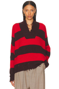 Details - 60% virgin wool, 40% polyamide - Dry clean only - Pull-on styling - Ribbed trim with intentional distressing - V-neck design - Heavyweight knit fabric - Made in Italy - Our Style No. SMCC-WK125 - Manufacturer Style No. 6K10363S2585