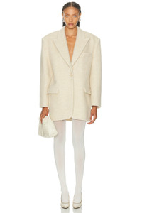 Details - Self: 36% acrylic, 34% polyester, 30% wool - Lining: 100% polyester - Dry clean only - Front button closure - Structured padding at shoulders - Breast seam pocket - Front flap pockets - Shaggy twill fabric - Made in Italy - Our Style No. ADME-WO21 - Manufacturer Style No. T182030B TNW047