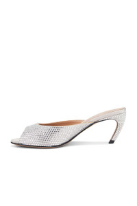 Details - Crystal embellished satin upper with leather sole - Made in Italy - Slip-on styling - Faux leather footbed with leather lining - Almond peep toe with curved heel - Approx 70mm/ 2.75 inch heel - Our Style No. ATTF-WZ161 - Manufacturer Style No. 250WSH00869 - EEE106TA - 002