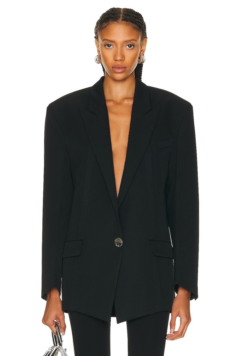 Details - Self: 100% virgin wool - Lining: 100% viscose - Made in Italy - Dry clean only - Singular front button closure - Welt pocket at breast - Front flap pockets - Padded shoulders with buttoned cuffs - Our Style No. ATTF-WO49 - Manufacturer Style No. 241WCG46 - W046 - 100