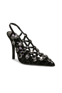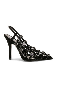 Details - Stud embellished suede upper and leather sole - Made in Italy - Slingback styling - Pointed toe - Rubber tap heel - Approx 115mm/ 4.5 inch heel - Our Style No. ATTF-WZ88 - Manufacturer Style No. 236WS743 - L007R - 100