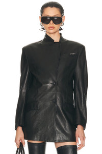 Details - Self: 100% lambskin - Lining: 100% viscose - Professional leather cleaning only - Front button closure - Light padding at shoulders and asymmetrical collar design - Breast seam pocket with silver-tone logo embossed hardware detail - Front lower flap pockets - Buttoned cuffs - Genuine leather - Made in Romania - Our Style No. ATTF-WO78 - Manufacturer Style No. 251WCG00084 - LBT137AA - 100
