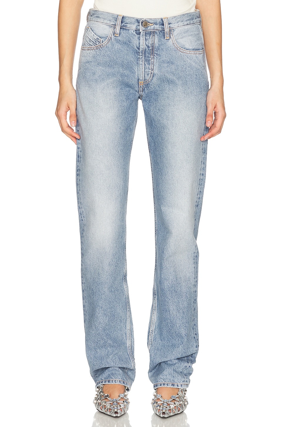 Details - Self: 100% cotton - Lining: 65% polyester, 35% cotton - Made in Italy - Hand wash - Button fly closure - 5-pocket styling - Midweight denim fabric with intentional fading - Our Style No. ATTF-WJ31 - Manufacturer Style No. 250WCP00073 - DDD085SS - 024