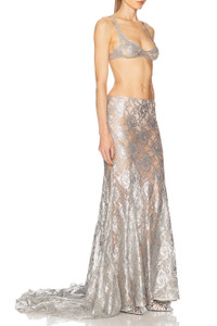 Details - Self: 59% viscose, 39% polyamide, 2% polyurethane - Lining: 100% polyamide - Made in Italy - Unlined - Hidden side zipper closure - Metallic coated lace fabric with extended train - Item not sold as a set - Our Style No. ATTF-WQ97 - Manufacturer Style No. 250WCS00275 - VVP001RA - 002