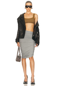 Details - Self 1: 92% viscose, 8% elastane - Self 2: 69% polyamide, 31% elastane - Dry clean only - Fully lined - Elasticized waistband - Back logo embroidered detail - Jersey fabric with ruching detail and asymmetrical hem - Made in Italy - Our Style No. ATTF-WQ98 - Manufacturer Style No. 251WCS00279 - JJJ068AA - 183