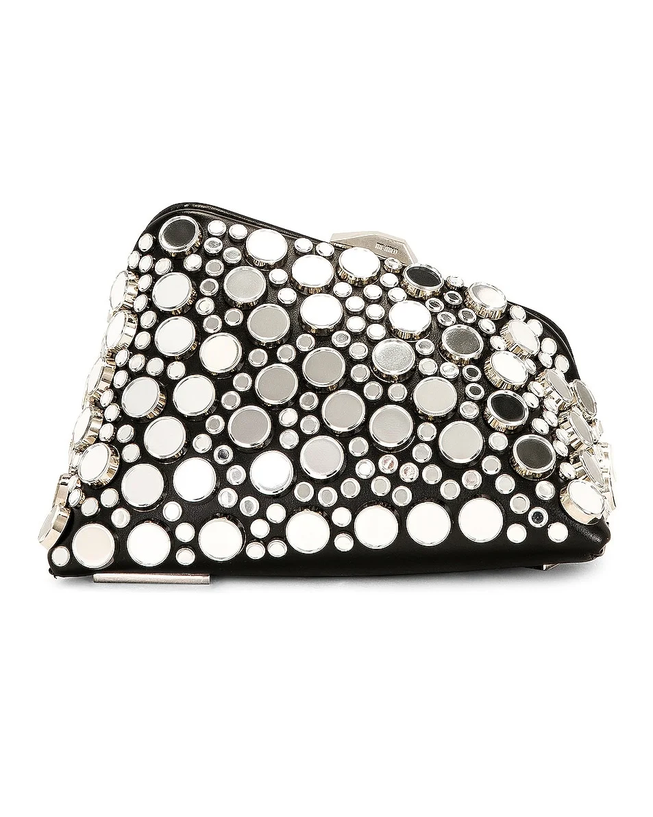 Details - Mirror embellished leather with leather lining and silver-tone hardware - Made in Italy - Snap top closure - One main compartment with single flat pocket - Detachable leather shoulder strap - Slanted design - Measures approx 7.5" W x 5" H x 3.25" D - Shoulder strap with a 12.5" drop - Our Style No. ATTF-WY16 - Manufacturer Style No. 227WAH40 - L019R - 100
