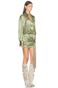 Details - Self 1: 100% silk - Self 2: 100% viscose - Made in Italy - Dry clean only - Partially lined - Pull-on styling with top button closure - Attached tie-up accent with tassel at skirt - Buttoned cuff - Our Style No. ATTF-WD225 - Manufacturer Style No. 247WCA307 - S012 - 277